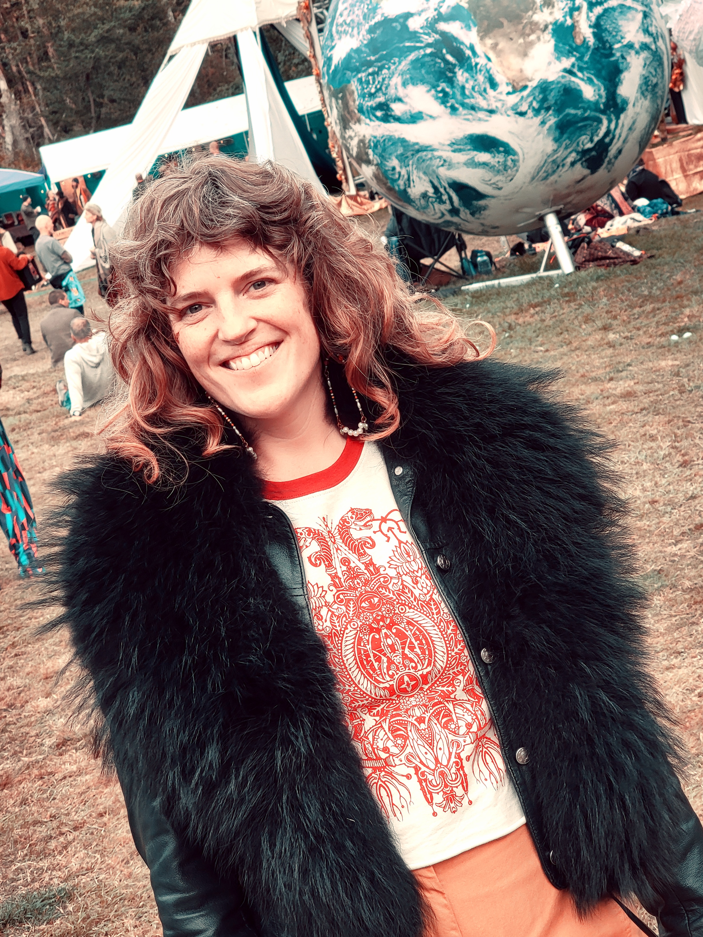 IMAGINE festival / Orcas Island / 2025 / wearing the"Victory" tshirt design inspired by the 'Tarot / 6 of Wands'